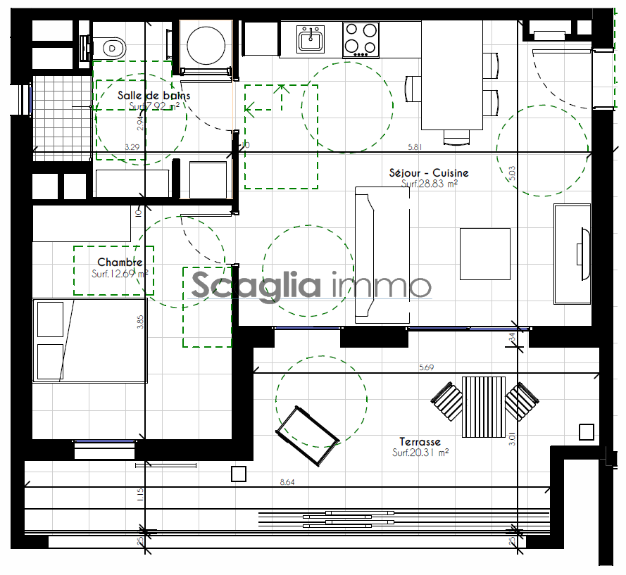 L'agence Scaglia Immo, vous propose à la vente ce bel appartement de type 2 situé au 1er étage dans la nouvelle résidence " Les Jardins de la Viva".