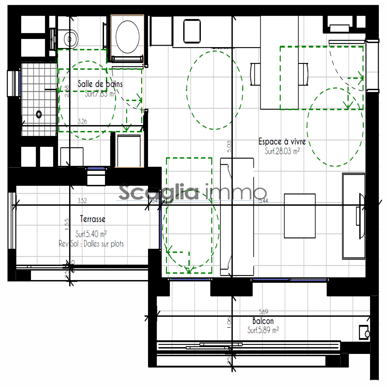 L'agence Scaglia Immo, vous propose à la vente ce beau studio de 35.86 m² situé au 1er étage dans la nouvelle résidence " Les Jardins de la Viva".