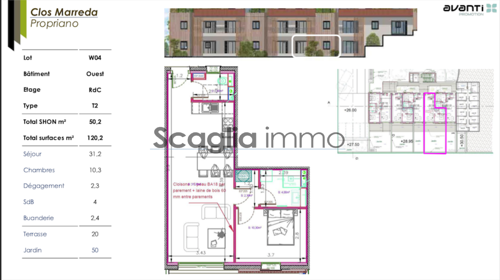 L'agence SCAGLIA Immo vous propose à la vente cet appartement de type 2 en VEFA au rez-de-chaussée. La superficie habitable est de 50.2 m² avec un jardin privatif de 50 m², une terrasse de 20 m², et une cuisine équipée incluse dans le prix. Idéalement situé dans une résidence neuve, sécurisée et respectueuse de l’environnement de 30 logements avec piscine collective. Ce programme bénéficie d’un emplacement privilégié à proximité du port de commerce de Propriano, des plages et des commodités.