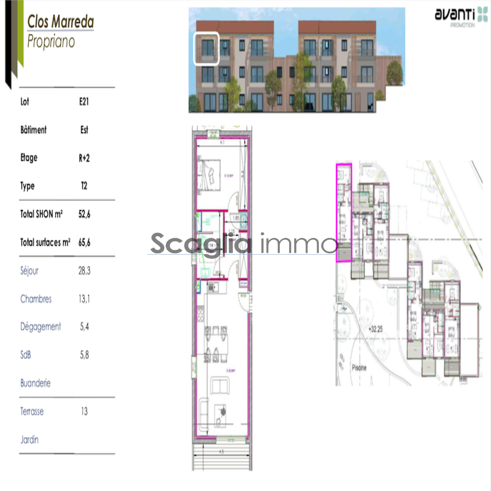 L'agence SCAGLIA Immo vous propose à la vente cet appartement de type 2 en VEFA au deuxième et dernier étage. La superficie habitable est de 52.6 m², avec une terrasse de 13 m², et une cuisine équipée incluse dans le prix. Idéalement situé dans une résidence neuve, sécurisée et respectueuse de l’environnement de 30 logements avec piscine collective. Ce programme bénéficie d’un emplacement privilégié à proximité du port de commerce de Propriano, des plages et des commodités. L'appartement profite d'une belle vue mer.