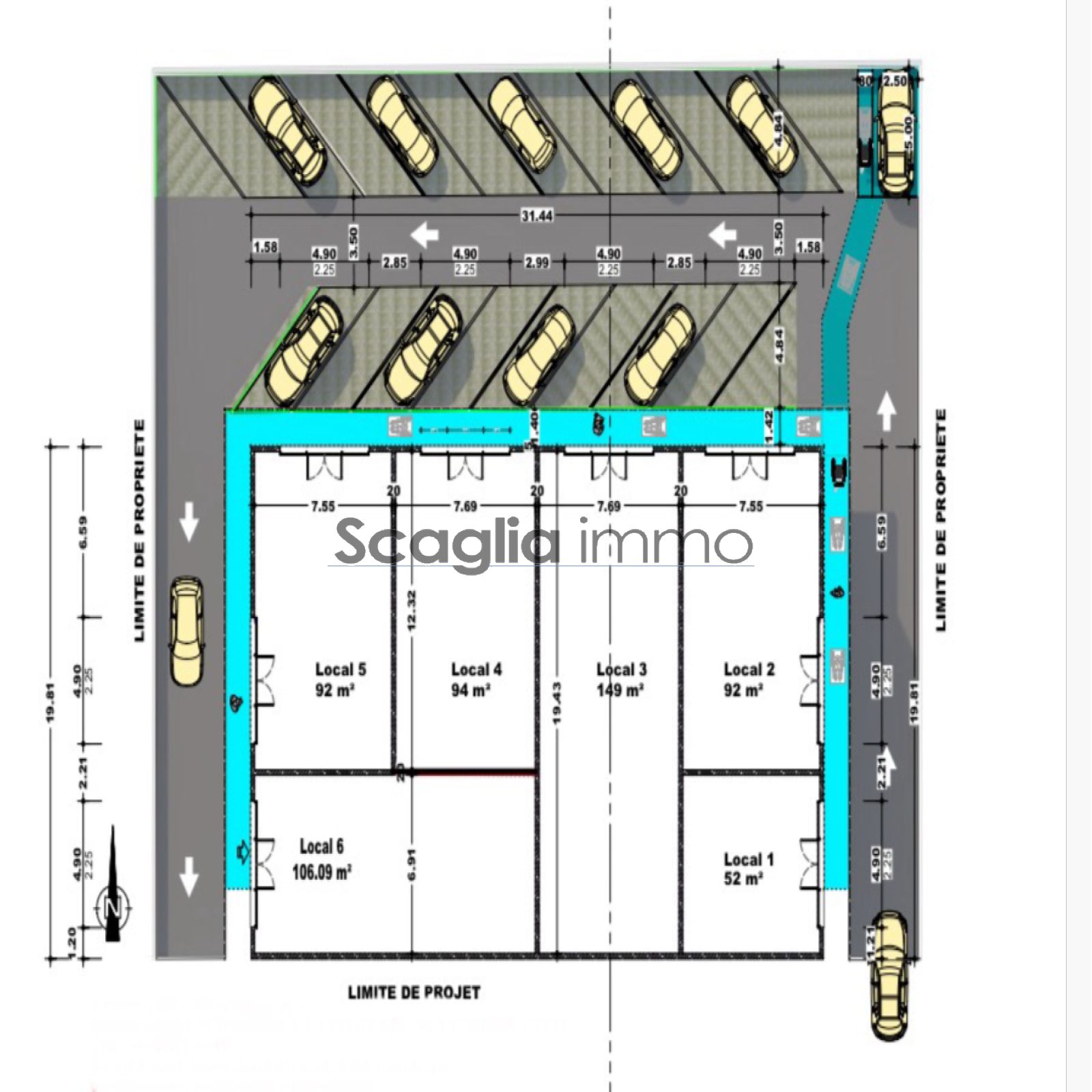 L'agence SCAGLIA Immo vous propose 149 m² de surface commerciale dans un ensemble de six lots avec une hauteur de plafond de huit mètres. Vendus clos couvert sur une chappe en béton. Parking privé. Zone industrielle en plein expansion. Accès qasi-direct sur les axes AJACCIO-BASTIA-PORTO VECCHIO.