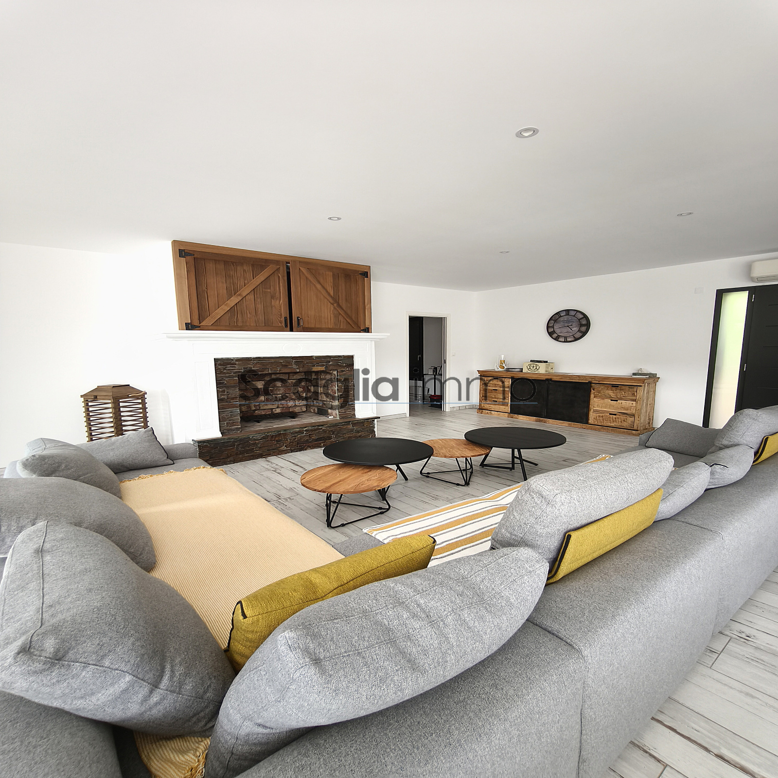 - Etage principale : un séjour lumineux de 76 m² avec cheminée, cuisine équipée ouverte sur une vaste terrasse, une suite parentale avec salle d'eau, ainsi qu'un bureau ou chambre d'appoint.