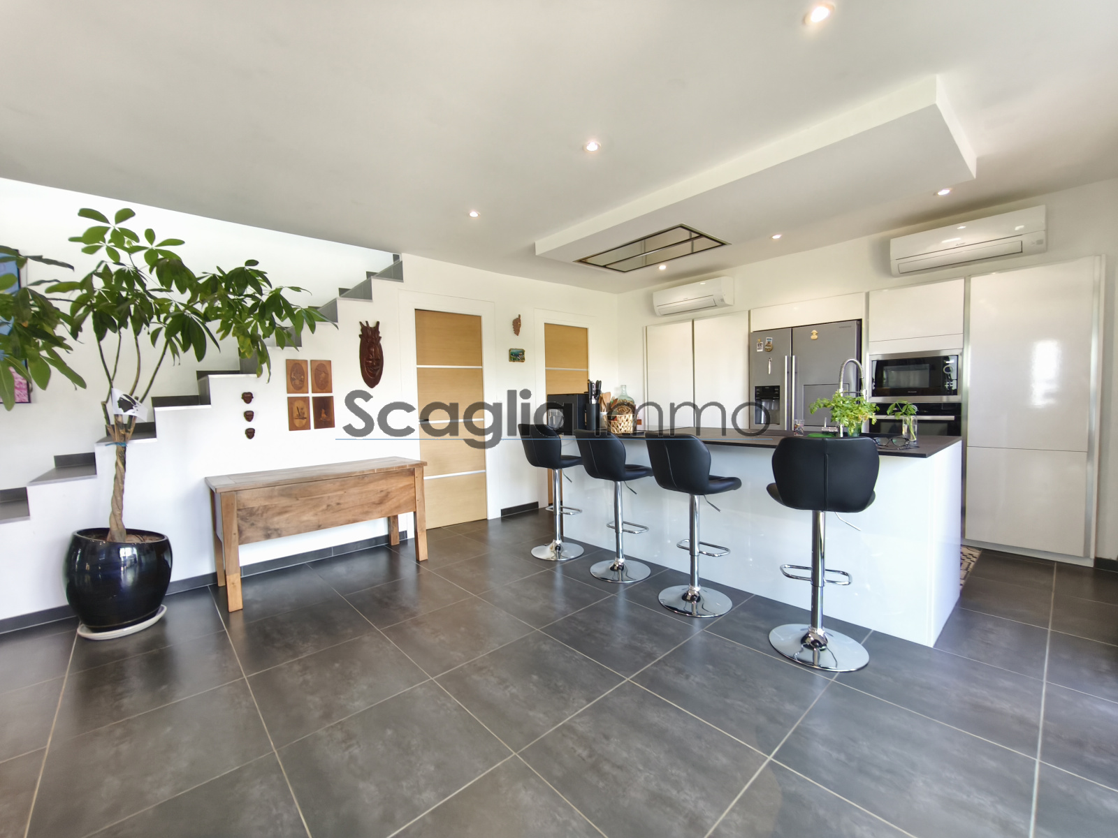 L'agence SCAGLIA Immo vous propose à la vente une belle villa récente de type 5 d'une surface habitable de plus de 150 m², sur un terrain clos et arboré de 1250 m². Cette villa est proche des plus belles plages de la rive sud d'Ajaccio et à 5 minutes des commerces et restaurants de la station balnéaire de Porticcio.