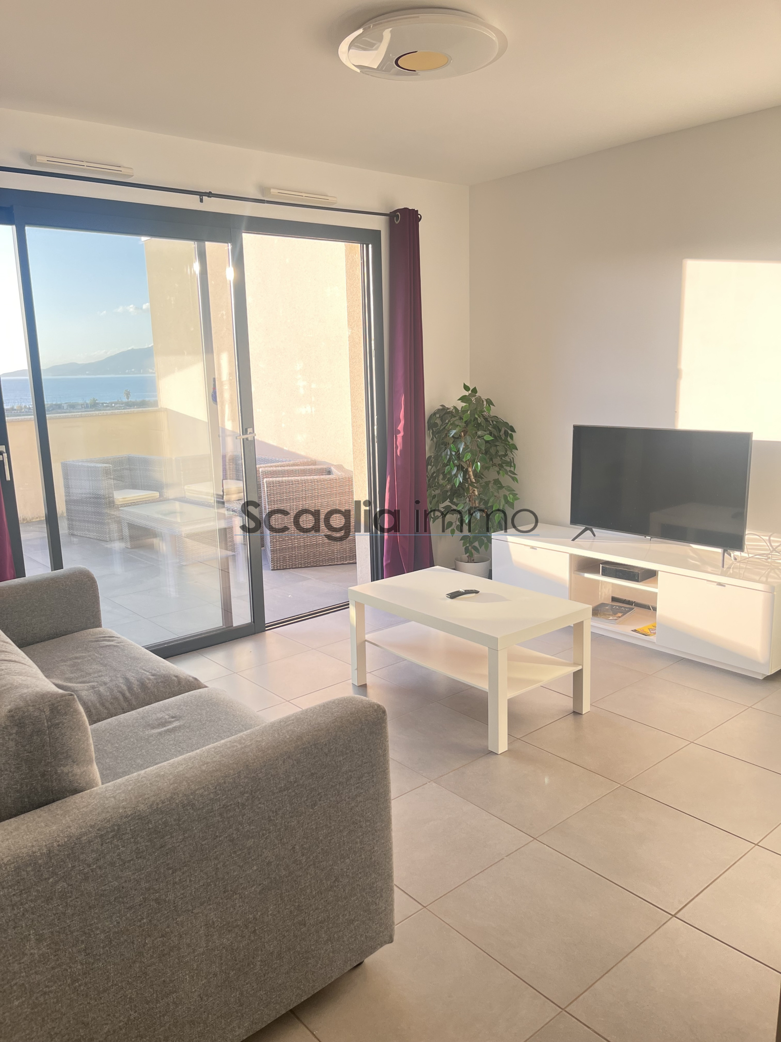 L'agence SCAGLIA Immo vous propose à la vente en exclusivité à Porticcio, ce bel appartement de type 2 ayant une chambre et une terrasse de belle profondeur. Bâtiment conforme aux normes d'accessibilité. Mesurant 45 m², l'espace intérieur est constitué d'une salle d'eau, un espace cuisine, une chambre et un coin salon de 23 m². Matériaux de qualité.
