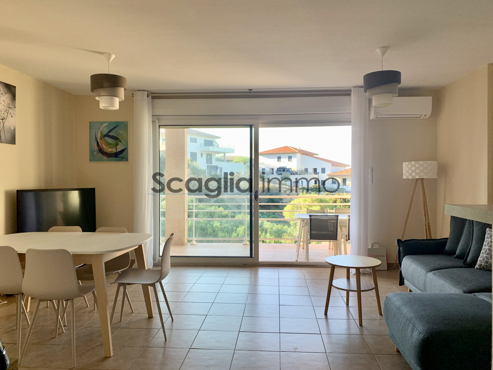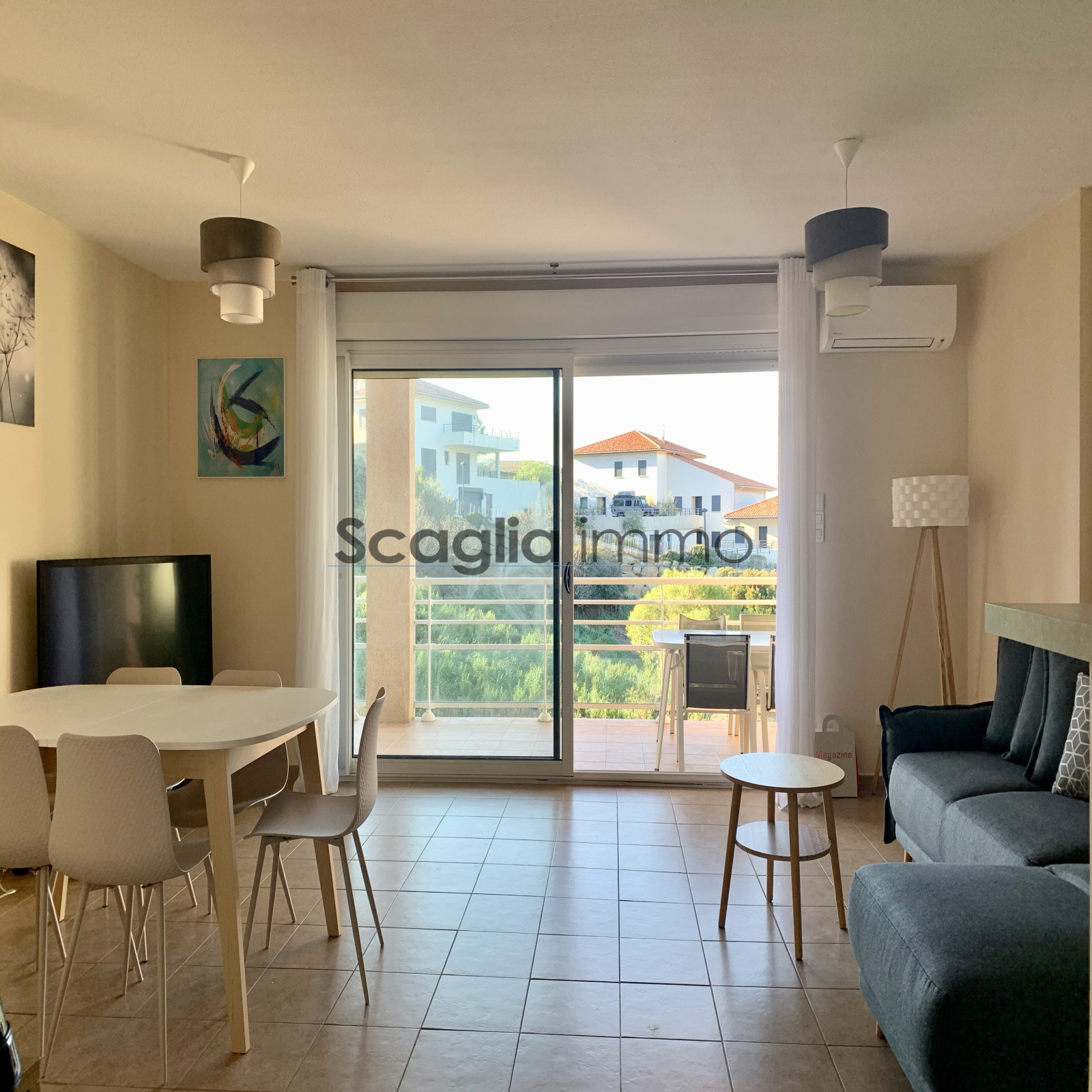 L'agence SCAGLIA Immo vous propose à la vente en exclusivité au coeur de la station balnéaire de Propriano, à quelques encablures des plages, du port de plaisance et des commerces. Ce bel appartement d'environ 63 mètres carrés se compose comme suit : cuisine entièrement équipée ouverte sur séjour-salon donnant sur une loggia de près de 18 mètres carrés, deux chambres, une salle d'eau, un toilette indépendant.