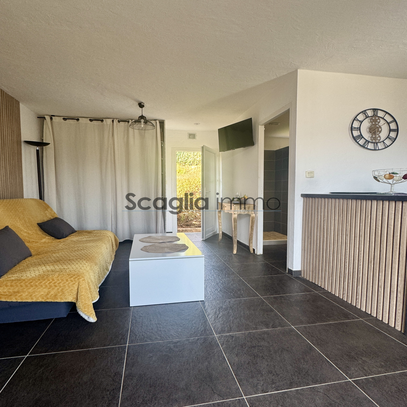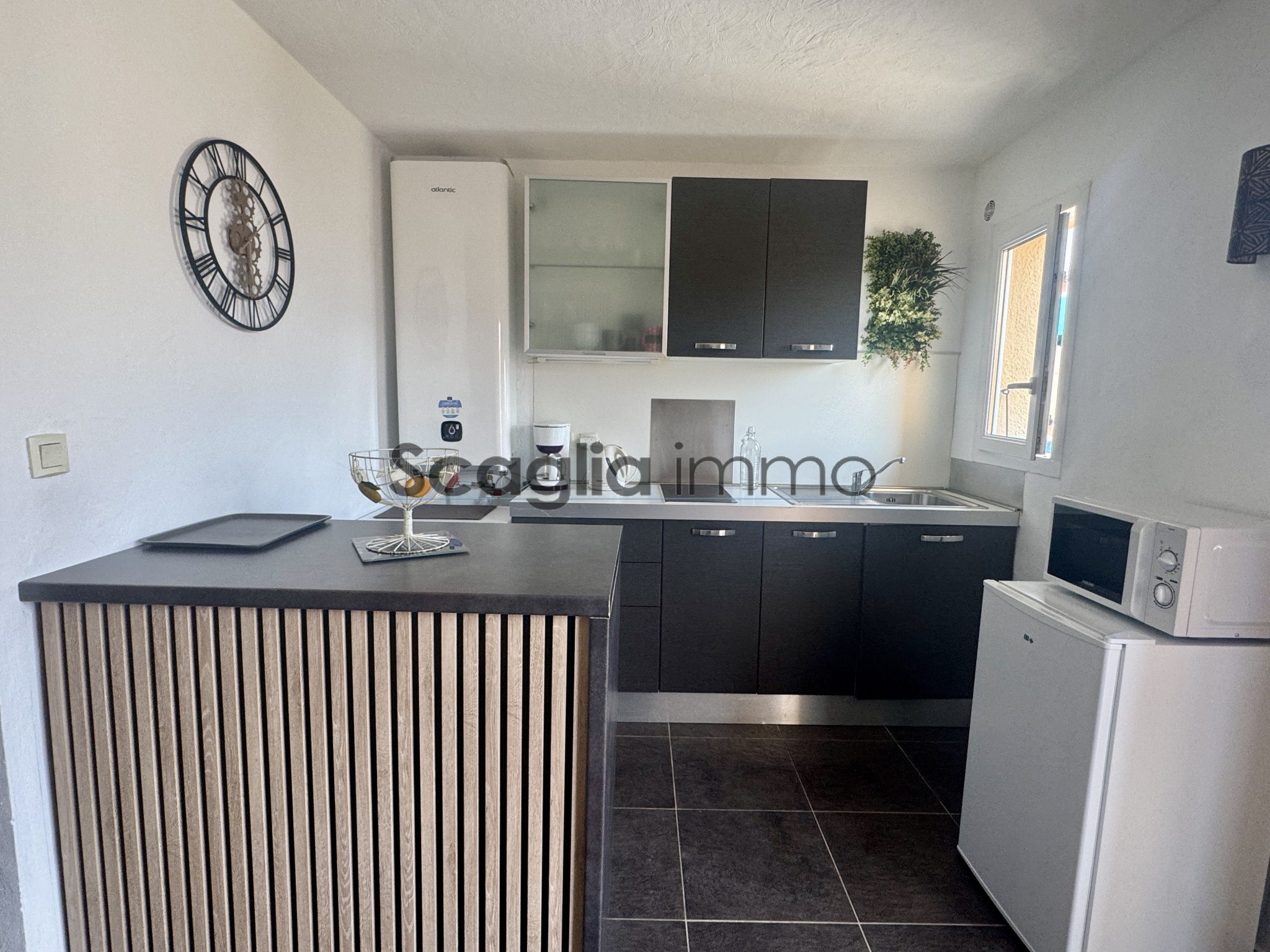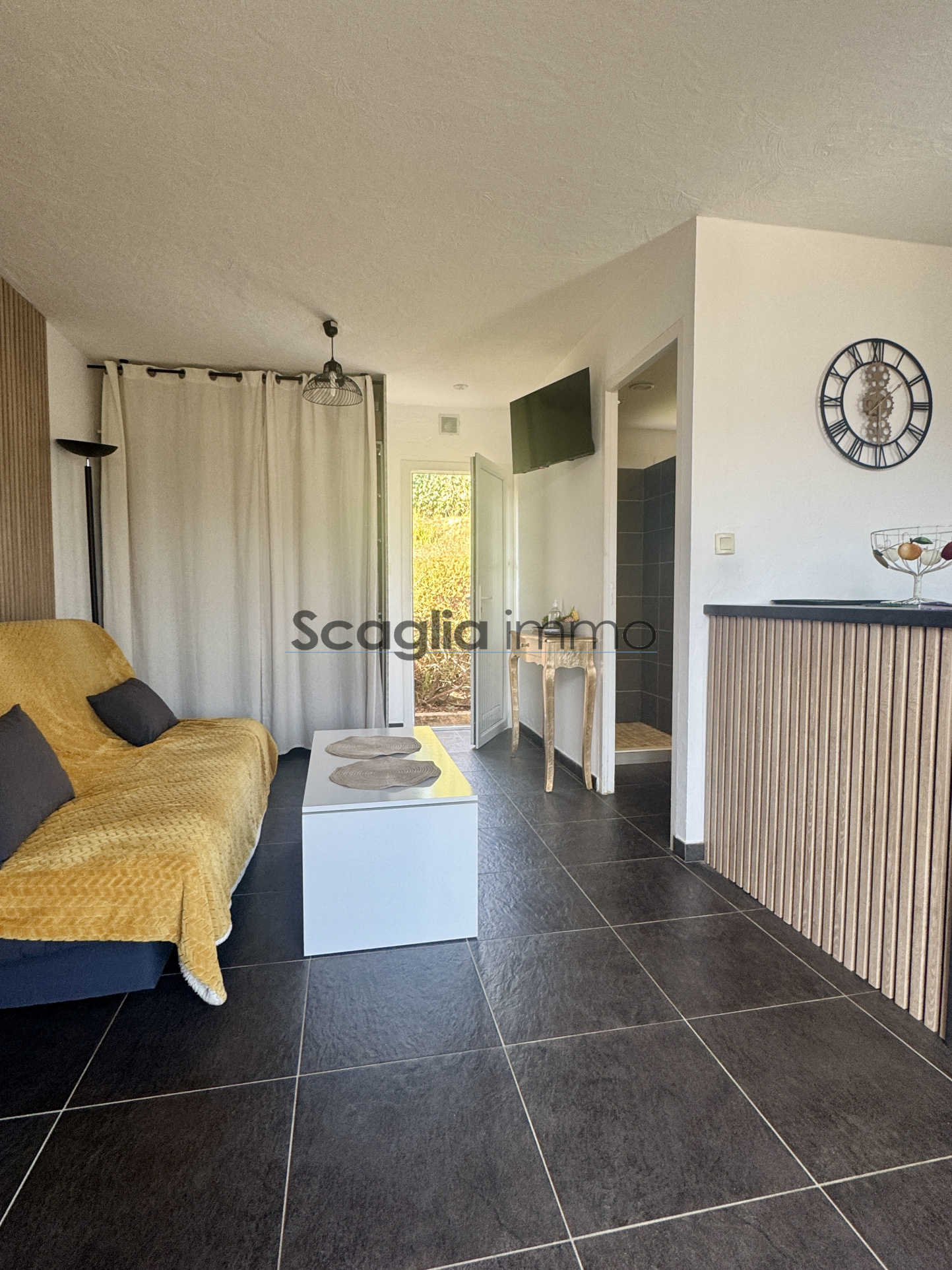 L'agence Scaglia Immo vous propose à la vente ce charmant studio d'une surface habitable de 24 mètres carrés rénové avec goût. Il se compose d'un séjour ouvert sur la cuisine entièrement équipée et une salle d'eau avec wc. À l'exterieur vous profiterez d'une terrasse spacieuse avec un aperçu sur la mer. Le bien est vendu meublé.