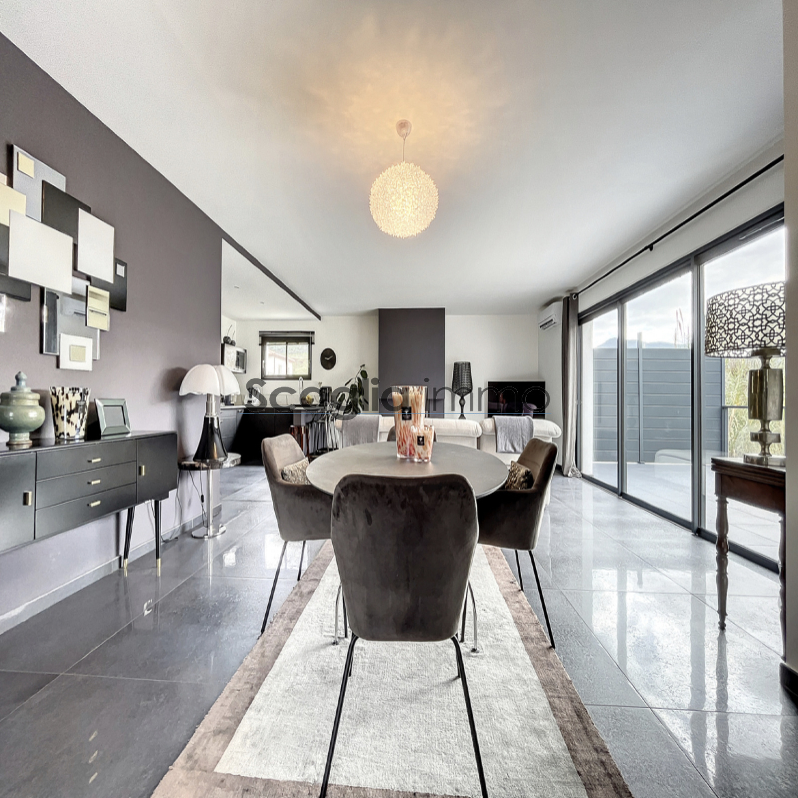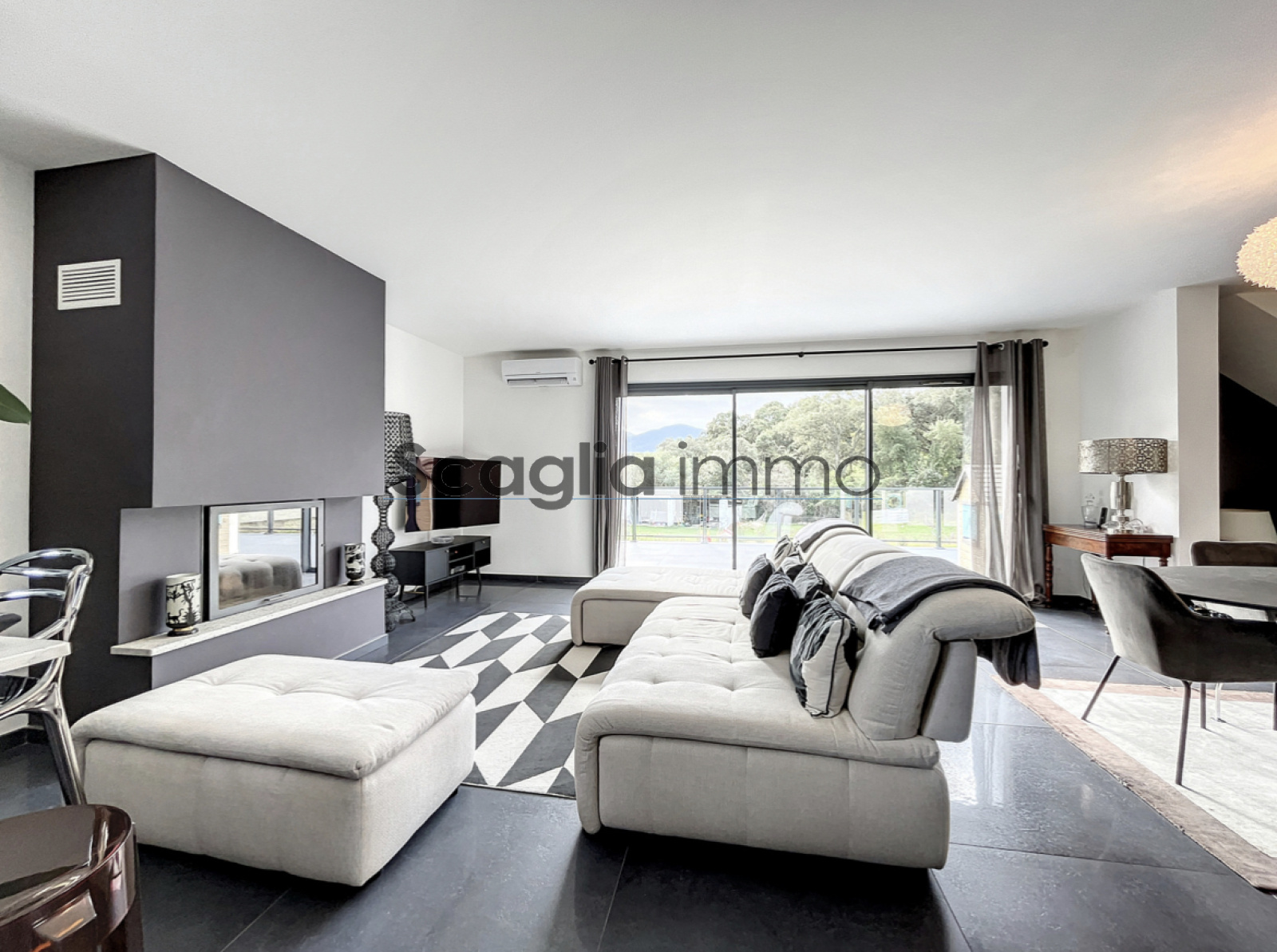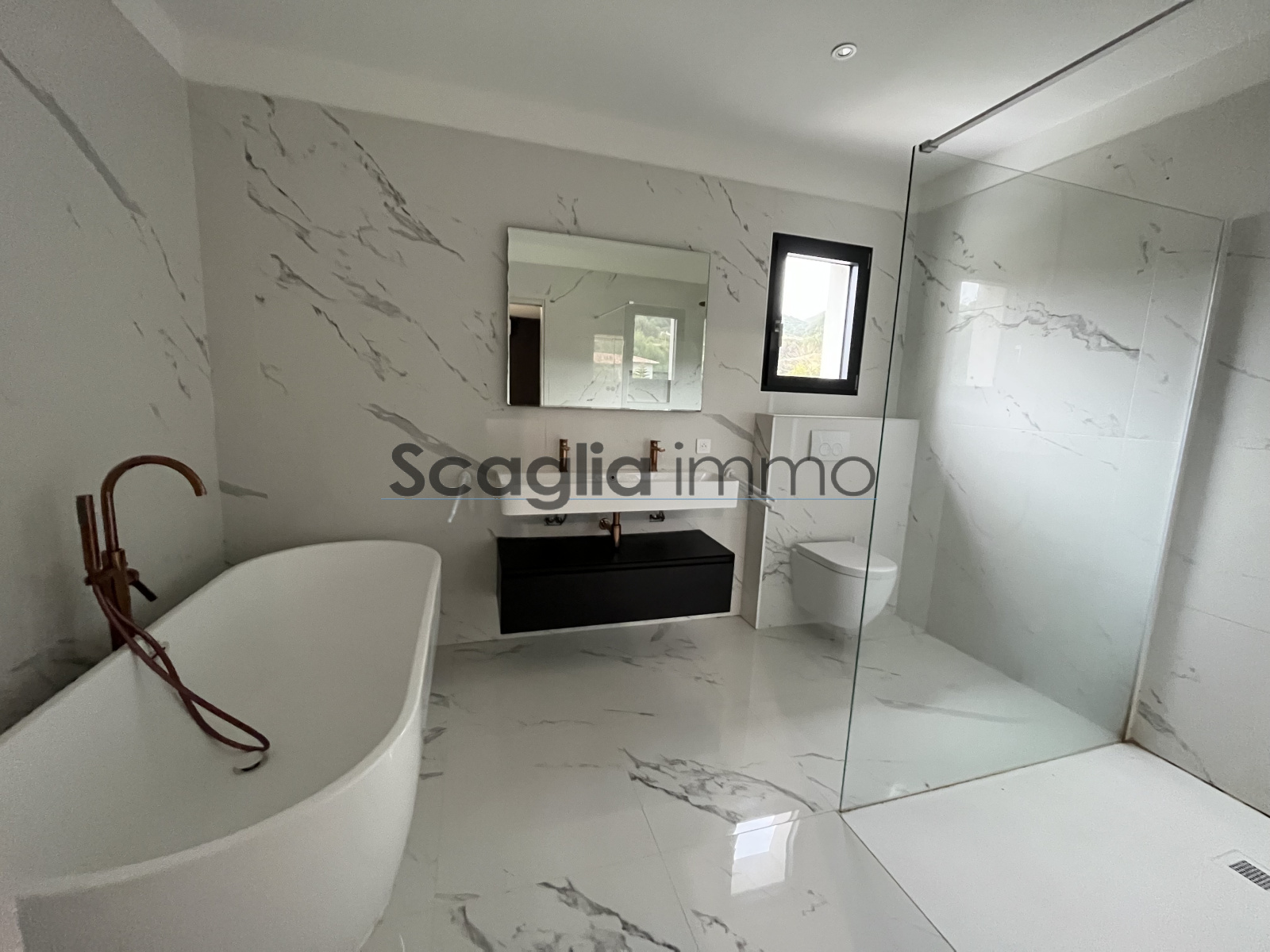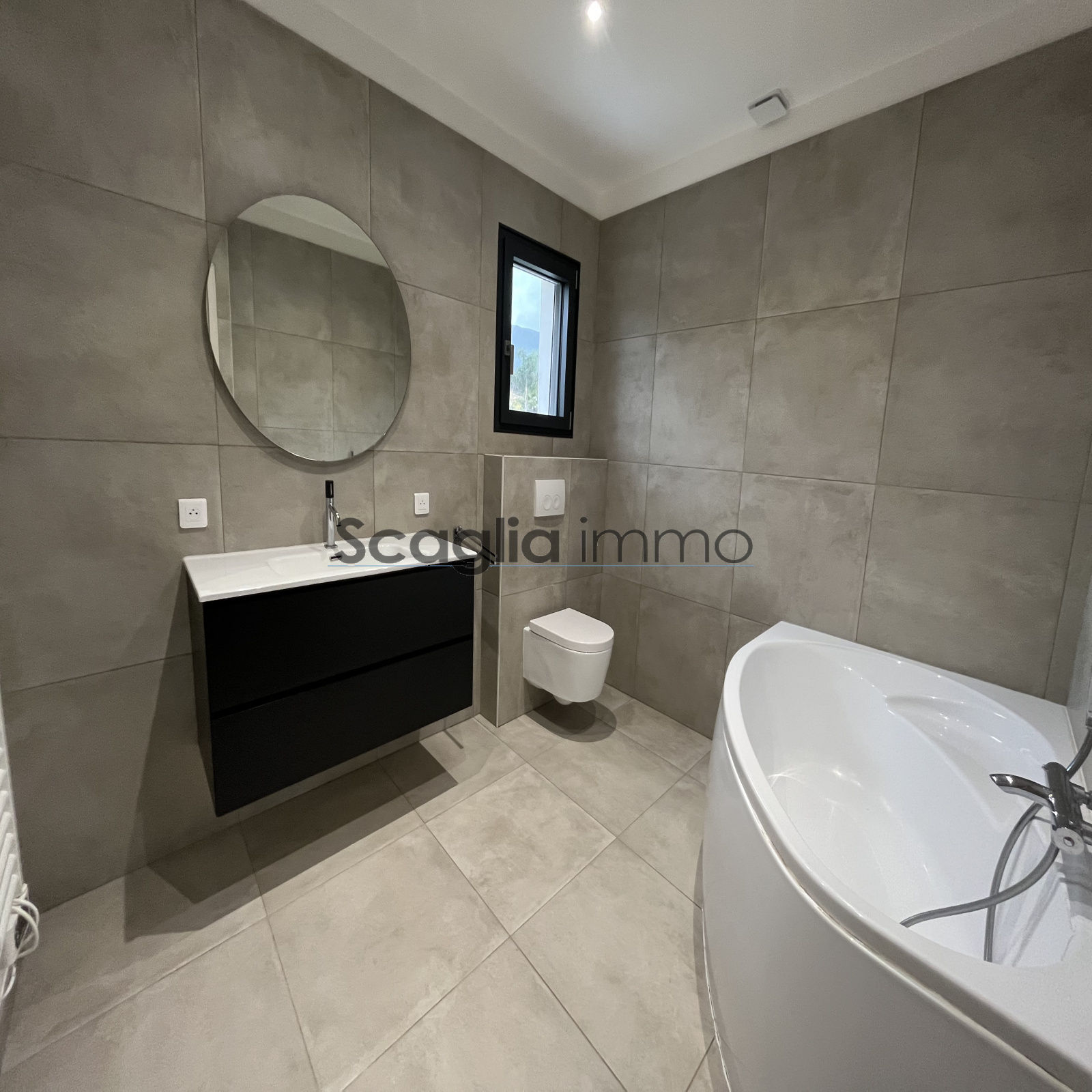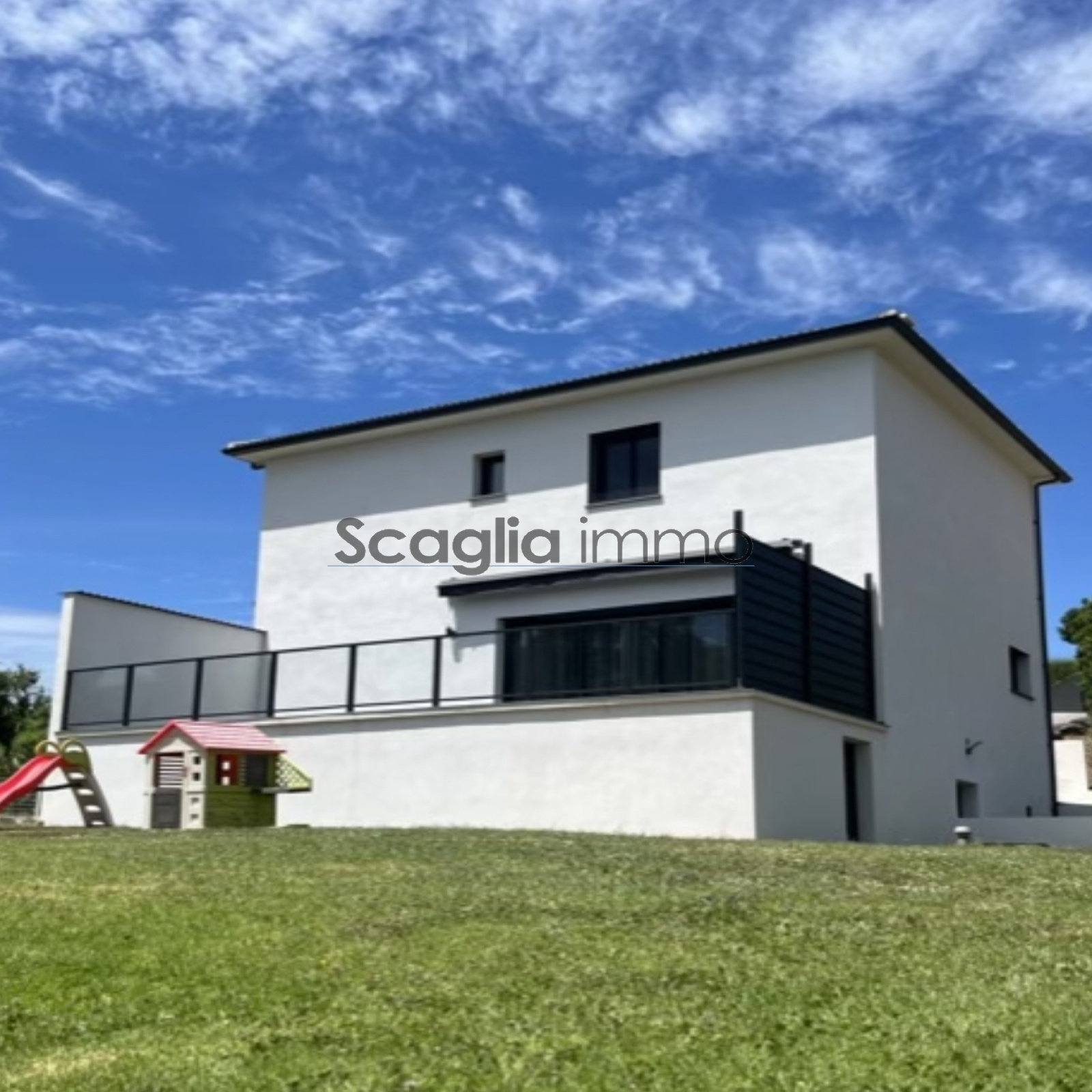L'agence SCAGLIA iMMO vous propose cette belle villa récente en plein centre de Bastelicaccia sur deux niveaux. A 15 minutes de l'aréoport international d'Ajaccio. Proche des commerces de proximité, elle se compose en rez-de-chaussée d'une cuisine entièrement équipée ouverte sur le séjour, d'un cellier, d'un WC visiteurs, à l'étage de trois belles chambres dont une suite parentale et d'une salle de bain supplémentaire. Terrain clos et arboré de 1 800 m². Vide sanitaire. Double vitrage. Climatisation réversible.